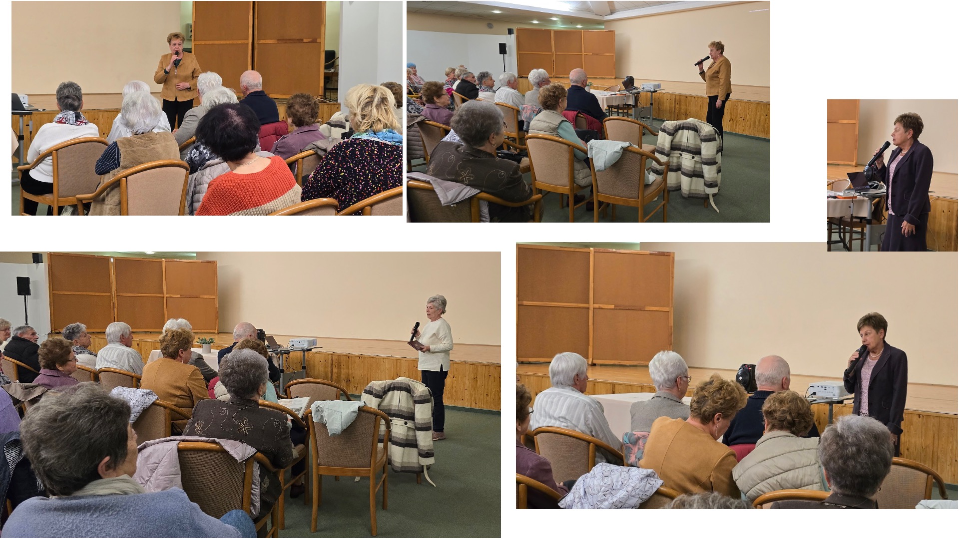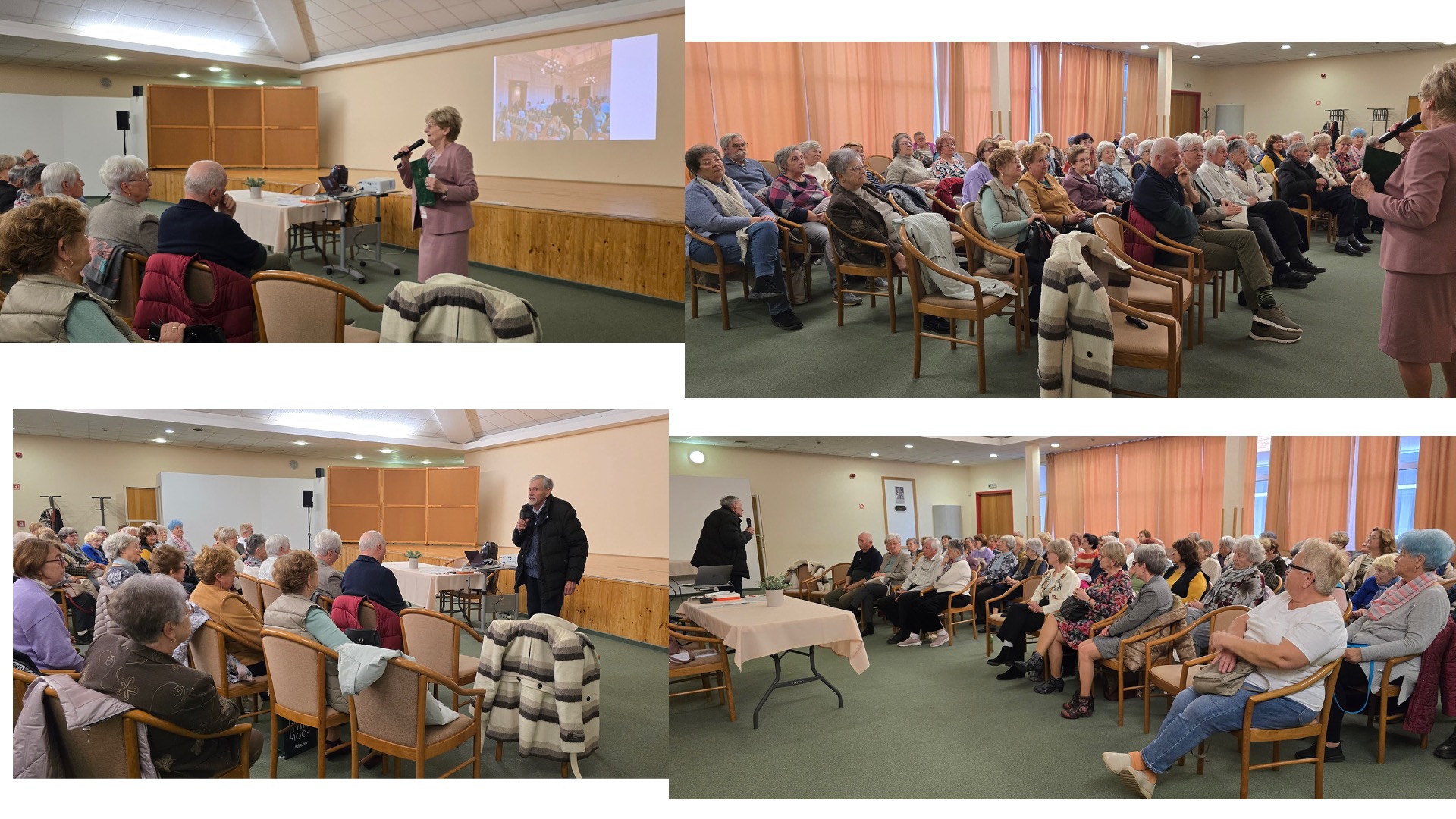 Dsida Jenő Én hívlak élni című versével köszöntötte az egyesület elnöke a megjelenteket, majd röviden kitért az idősek világnapjának jelentőségére. Külön köszöntötte a Szenior örömtánc résztvevőit, akik vállalták Baranyainé Imre Julianna irányításával, hogy ízelítőt adnak az egészségmegőrző foglalkozásaikról. Az előző hónapban előadónk beszélt a demencia megelőzésének lehetőségei között a mozgás szerepéről. A szenior tánc remek lehetőség, ráadásul találkozónkon is jó hangulatot teremtett a csoport a bemutatójával.