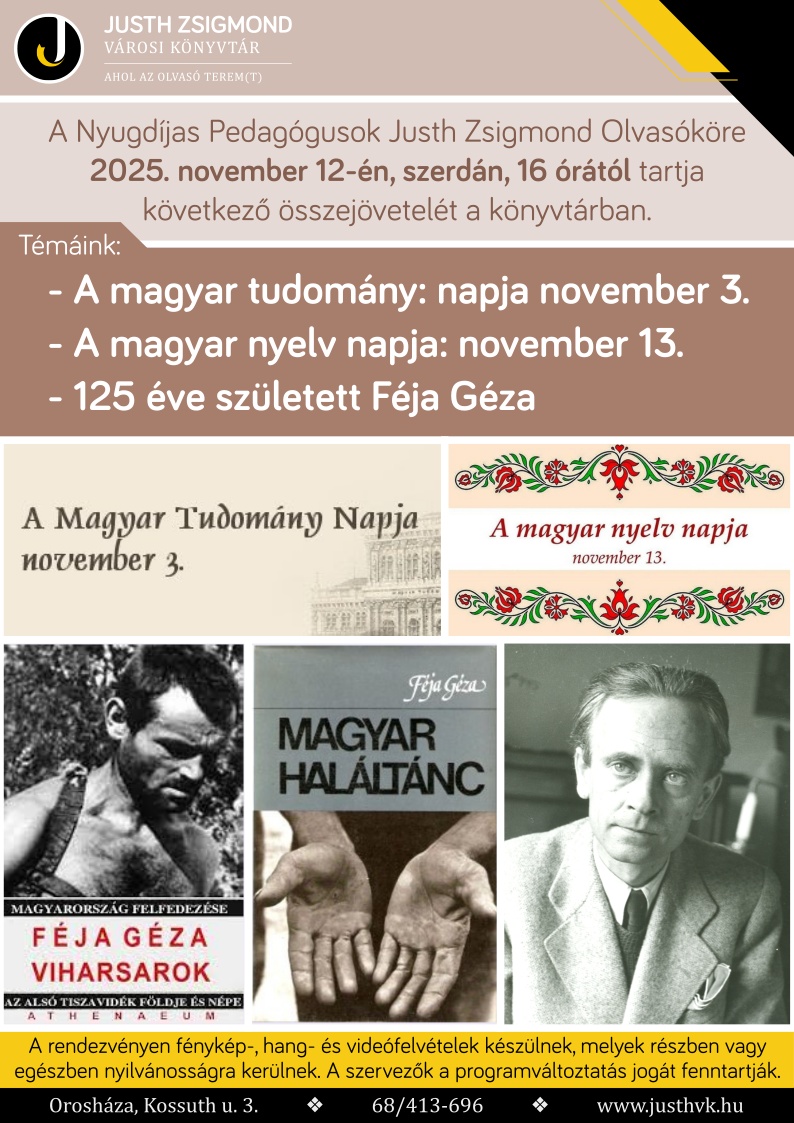 Olvasókörünk második részében Féja Géza író, újságíró, publicista, tanár életének, munkásságának bemutatása következett Csányiné Kádár Tünde előadásában.