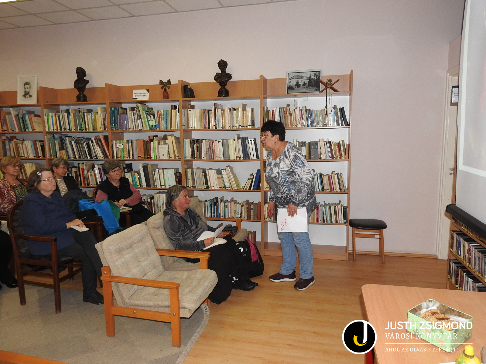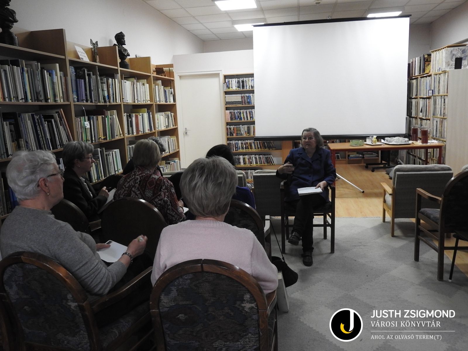 Rendhagyó módon két héttel később volt, mert a könyvtár zárva tartott. Ezúttal az 50 éve elhunyt Németh Lászlóra emlékeztünk. Csányiné Kádár Tünde prezentációja után Gyarmatiné Hepp Erzsébet elemezte az író több regényét.