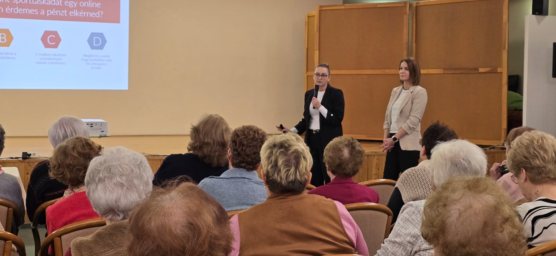 A megszokott helye, a PMK Bubik termében tartottuk első összejövetelünket, amelyen előadóink. az OTP fiókvezetője és munkatársa az internetes csalásokról adott tájékoztatást. Felhívták a figyelmet a leggyakoribb módszerekre, és tanácsokat adtak azok kivédésére is. Számos gyakorlati példán keresztül segítséget kaptunk arra, hogy felkészüljünk a csalók állandóan fejlődő módszerei ellen.